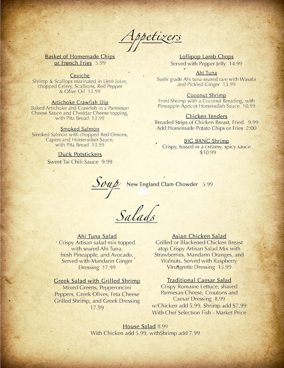 Shrimp & Scallops, marinated in Lime Juice, Celery, Cilantro, Red Peppers, Olive Oil & Pita Bread 17.